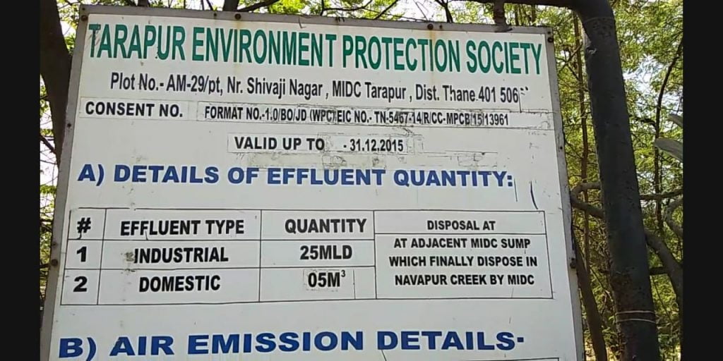 ◼राष्ट्रीय हरित लवादाने याअगोदर तारापुर येथील प्रदुषण करणाऱ्या सामुहिक सांडपाणी प्रक्रिया क्रेंद्राला 10 कोटी रूपयाचा दंड ठोठावला होता. तरी देखील सांडपाणी प्रक्रिया क्रेद्रांच्या बेजबाबदार व्यवस्थापकांनी याकडे दुर्लक्ष करत आपल्या कामकाजात कोणत्याही प्रकारची सुधारणा केली नाही. तारापुर येथील सामुहिक सांडपाणी क्रेंद्राची क्षमता ही 25 एमएलडी असुन याठिकाणी कारखान्यांचे सुमारे 40 एमएलडी रासायनिक सांडपाणी प्रतिदिनी प्रक्रिया करण्यासाठी येते यामुळे उर्वरित 20 एमएलडी सांडपाणी पाण्यावर कोणत्याही प्रकारची प्रक्रिया केली जात नसुन ते थेट नाल्यात सोडले जाते. यातच महत्त्वाचे म्हणजे जेवढ्या क्षमतेचा प्रकल्प आहे तेवढे 25 एमएलडी रासायनिक सांडपाण्यावर देखील योग्य प्रकारे प्रक्रिया केली जात नाही.