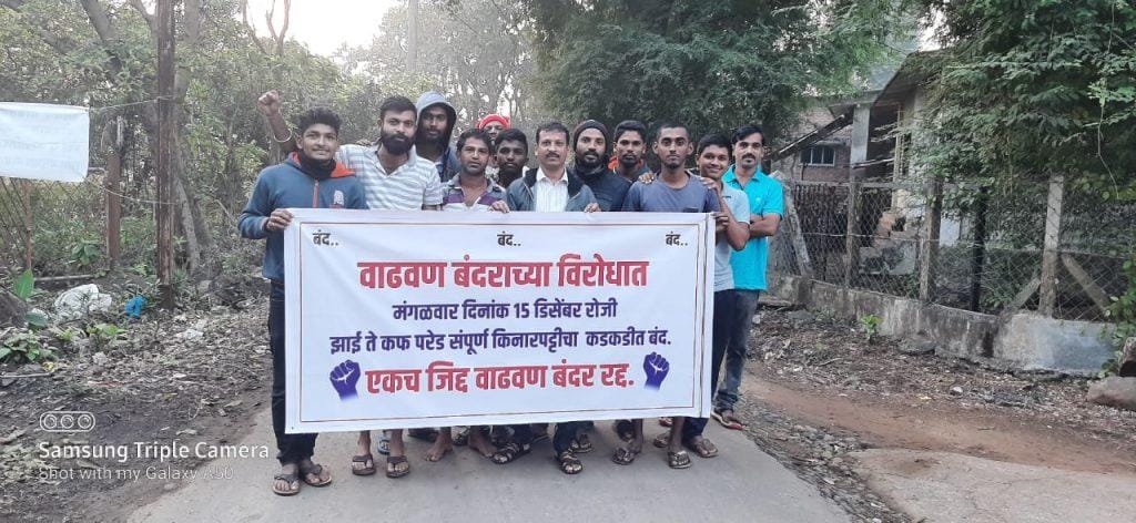पालघर: जिल्ह्यात प्रस्तावित असलेल्या वाढवण बंदराच्या निषेधार्थ पुकारलेल्या बंदा मध्ये पालघर जिल्ह्यातील किनारपट्टी भागातील मच्छीमार वस्त्यांमध्ये व गावांमध्ये शंभर टक्के बंद पाळण्यात आला. केंद्र सरकार लादू पाहत असलेले वाढवण बंदर हे येथील स्थानिक भूमिपुत्र मच्छीमार शेतकरी बागायतदार यांना नेस्तनाबूत करणार असून या बंदर उभारणी विरोधात हा बंद मंगळवारी पुकारण्यात आला होता.
