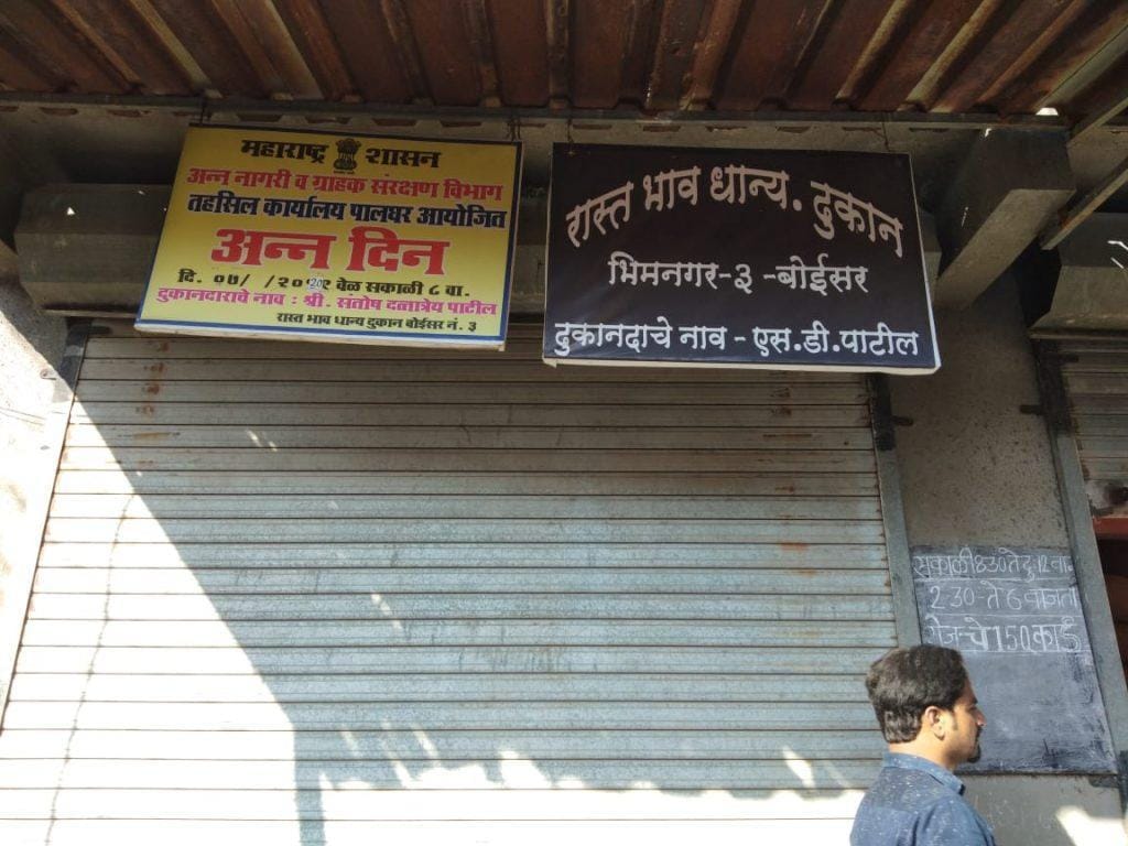 बोईसर भिमनगर येथील रास्तधान्याचे दुकान क्रमांक 3 हे संतोष दत्तात्रेय पाटील यांच्या नावाने असून प्रत्येक्षात हे दुकान एक परप्रांतीय चालवत आहे. पालघर तहसीलदार यांच्या समोर हा प्रकार उघडकीस आला असताना देखील तहसीलदार यांनी धान्याचा पंचनामा करा त्यानंतर कारवाई करू अशी भुमिका घेतली होती. याठिकाणी असलेल्या रास्तधान्य दुकानात तांदूळ, गहु व डाळीचा मोठा साठा असून साधारण एक हजार गोणी असल्याचे दुकान चालवत असलेल्या इसमाने तहसीलदार यांना सांगितले होते. यातच हे बोईसर येथील दुकान बेकायदेशीर पणे सरावलीच्या अनधिकृत वस्तीत सुरू असल्याचे अधिकाऱ्यांन समोर दिसून आले होते. तरीही अशा रास्तधान्याचा साठा बेकायदेशीर पणे गेल्या चार पाच वर्षापासून याभागात करून त्याचा काळाबाजार करण्यासाठी संगनमत करणाऱ्या माफियांना पुरवठा विभागाचे कसे अभय मिळते याचे उत्तम उदाहरण पालघर तहसीलदार सुनील शिंदे यांच्या समोर उघडकीस आल्यानंतर दोन दिवस उलटून देखील कोणत्याही प्रकारची कारवाई करण्यात आलेली नाही.