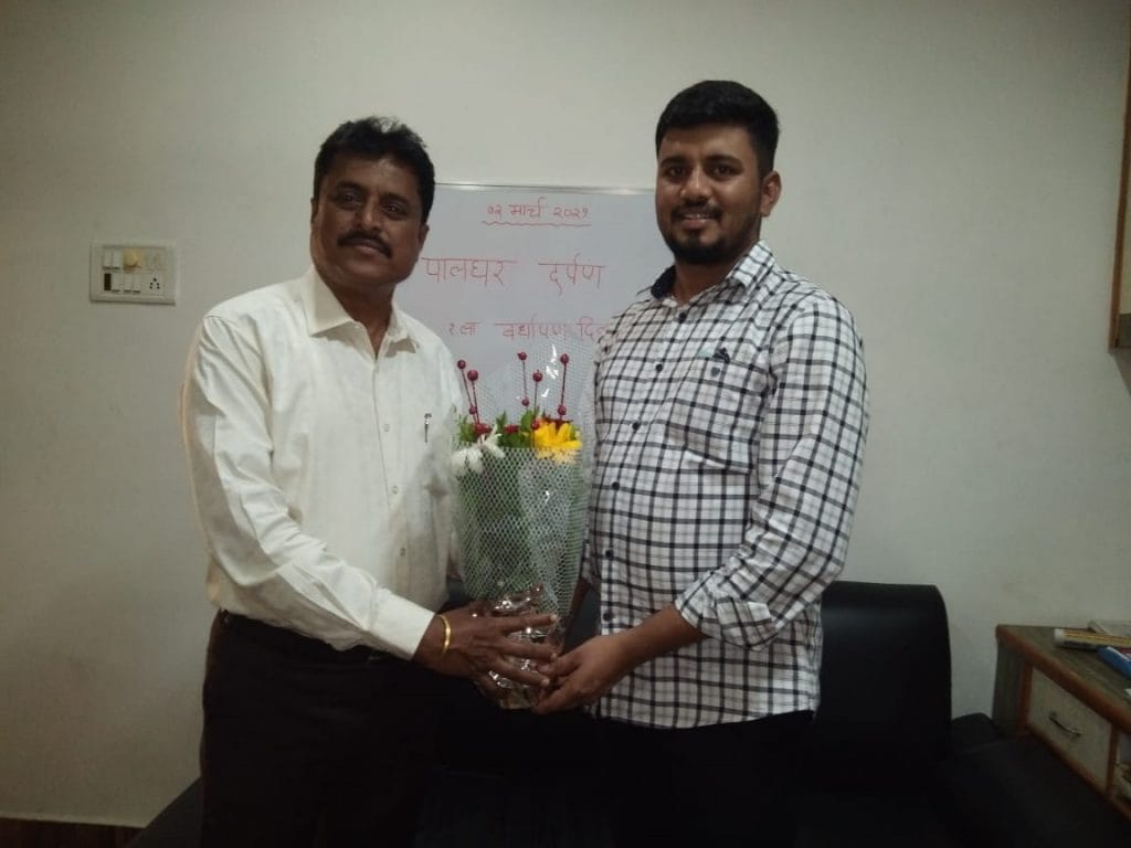 बोईसर: पालघर जिल्ह्यातील अल्पावधीतच नावलौकिक मिळवलेल्या पालघर दर्पण वृत्तपत्रांचा प्रथम वर्धापनदिन उत्साहात साजरा झाला. करोना मुळे लागु असलेले निर्बंध यामुळे मोजक्या उपस्थितीत हा कार्यक्रम साजरा झाला असून पत्रकार, शासकीय अधिकारी व सामाजिक क्षेत्रातील नामवंत लोकांनी यावेळी उपस्थित राहुन पालघर दर्पणच्या पुढील वाटचालीस शुभेच्छा दिल्या.