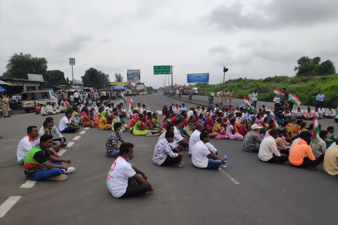■वसई तालुक्यात ससूनवघर, चिंचोटी, शिरसाड, पेल्हार, सकवार, खनिवडे टोल नाका, पालघर तालुक्यातील वरई फाटा, मस्तान नाका,चिल्हार फाटा, सोमटा,डहाणू तालुक्यात चारोटी टोल नाका तलासरी तालुक्यात दापचरी,आमगाव आणि आच्छाड फाटा येथे रास्ता रोको आंदोलन करण्यात आले.