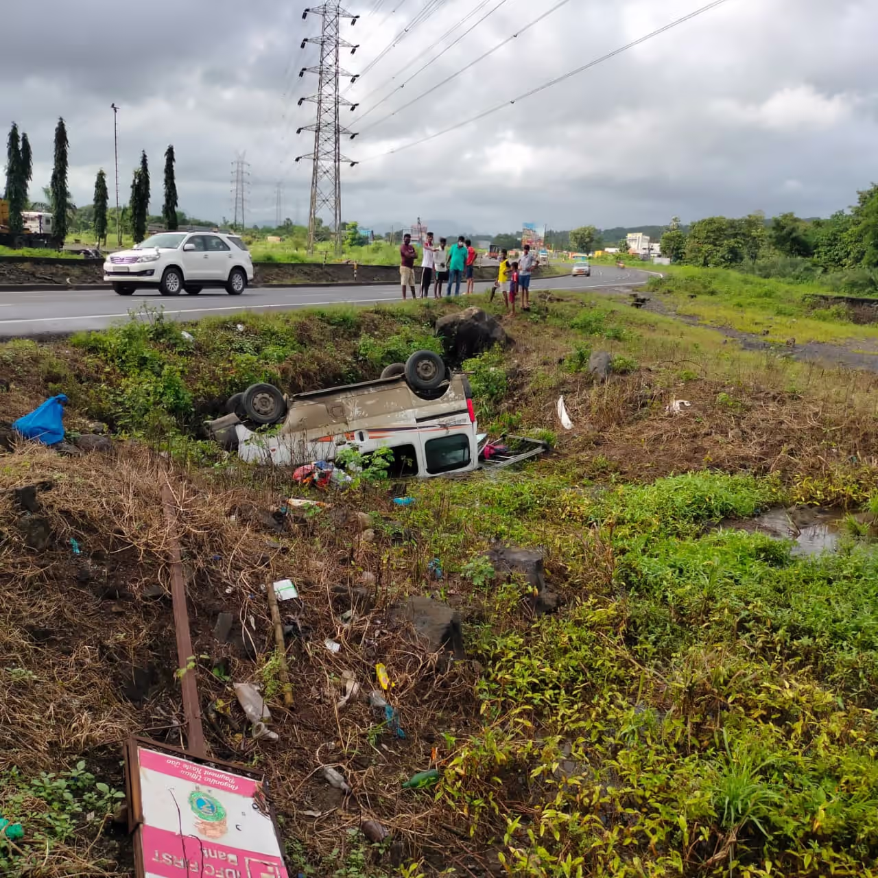शुक्रवारी सुरू होणारी गणेशोत्सवासाठी सुरत वरून रायगड जिल्ह्याच्या महाड तालुक्यातील देवघरकडे जाणाऱ्या दहा प्रवाश्यांना घेऊन इको कार (GJ05RK2492)निघाली होती. सायंकाळी चार वाजताच्या सुमारास महामार्गावरील हालोली गावच्या हद्दीत ओमकार धाब्यावर समोर आल्यानंतर भरधाव वेगातील कार चालकाला झोप लागली. त्यामुळे चालकाचे कार वरील नियंत्रण सुटून अपघात झाला. अपघात ग्रस्त इको कार मधील चार महिला चार पुरुष दोन लहान मुले किरकोळ जखमी झाली होती. त्यांना उपचारासाठी मनोर ग्रामीण रुग्णालयात दाखल करण्यात आले आहे.कार चालक राजेंद्र सुतार (वय.४२)गंभीर जखमी झाला आहे.