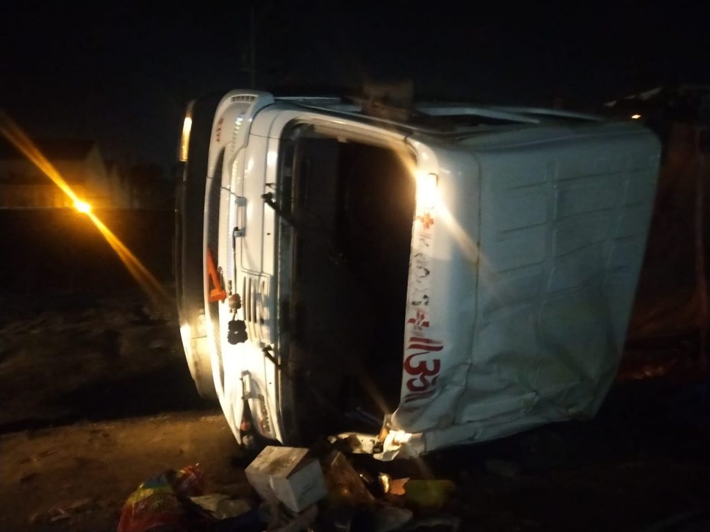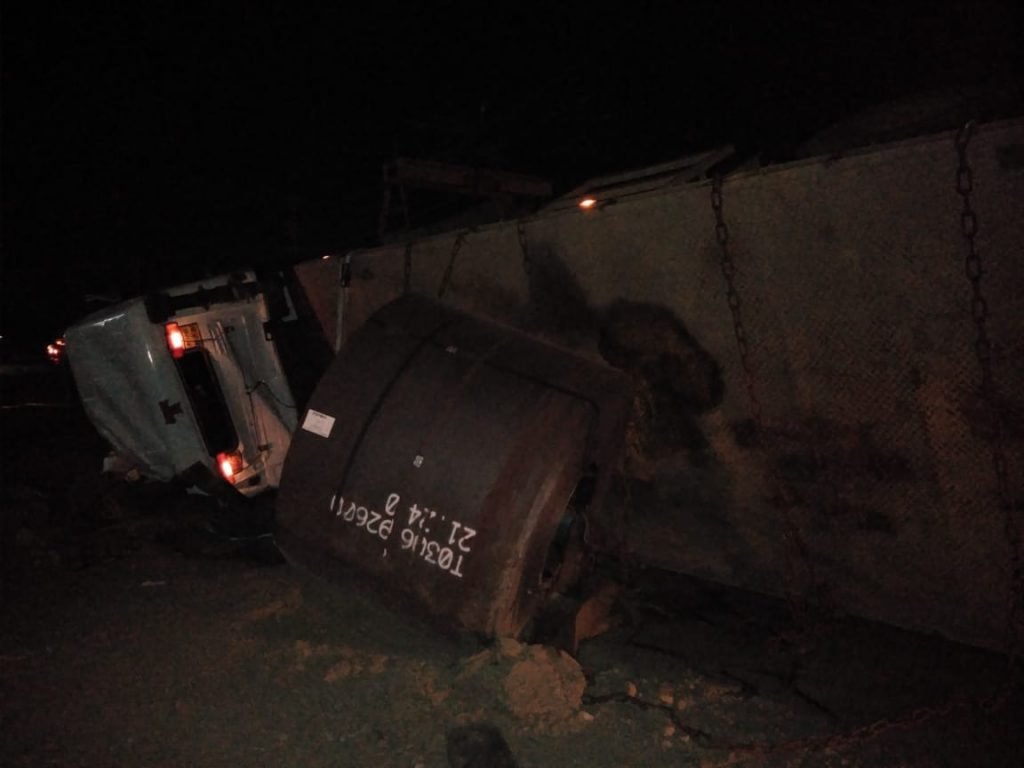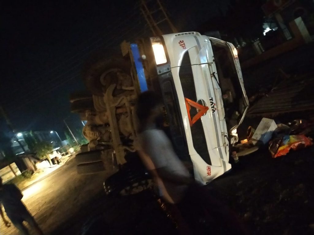 औद्योगिक क्षेत्रातील एका स्टिल कारखान्यातुन लोखंडी काँईल घेवुन निघालेला टेलर भरधाव वेगाने असल्याने तो मुकुट कंपनीच्या वळण रस्त्यावर पलटी झाला आहे. रात्री 10 वाजताच्या सुमारास पलटी झालेला ट्रक मधुन परराज्यात जाणारे सुमारे 20 ते 25 कामगार धोकादायक प्रवास करत असल्याची माहिती प्रत्येक्षदर्शी यांनी दिली. ज्यावेळी टेलर पलटी झाला त्यावेळी रस्त्यावर उभ्या असलेल्या काही लोकांनी ट्रेलर ची फुटलेली काच बाहेर काढुन मध्ये असलेल्या कामगारांना बाहेर काढले. हा मालवाहतूक करणारा ट्रेलर कलकत्ता रोड लाईन या कंपनीचा असल्याची प्रथमदर्शनी माहिती समोर आली आहे. यातच याठिकाणी चालक देखील फरार झाला असुन घटनास्थळी बोईसर पोलीस दाखल झाले आहेत.