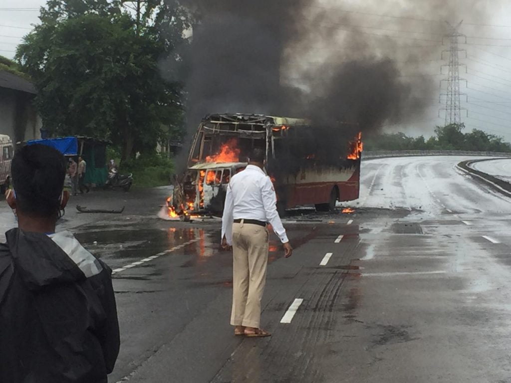 गुरुवारी दुपारी दोन वाजताच्या सुमारास बोईसर एसटी देपोमधील एसटी बस (MH14BT2649)बोरिवली हुन बोईसर बाजूला जात होती. एसटी बसच्या चालकाचे महामार्गावरील ढेकाळे उड्डाणपुलावर नियंत्रण सुटल्याने एसटी दुभाजक ओलांडून मुंबई वाहिनीवरील इको कारला(MH04HX7528) धडकली. या अपघातात इको कार ने पेट घेतल्याने इको कार आणि एसटी बस जळून खाक झाली. अपघातात इको चालक ड्रायव्हर केबिन मध्ये अडकून पडल्याने त्याचा जळून मृत्यू झाला. इको कार मधील एक प्रवाशी गंभीर जखमी झाला होता,त्याला स्थानिकांनी अपघातग्रस्त कार मधून बाहेर काढून मनोरच्या ग्रामीण रुग्णालयात दाखल करण्यात आले होते मात्र त्याचा उपचारादरम्यान मृत्यू झाला. एसटी बसच्या चालक निलेश भांगरे (35) किरकोळ जखमी झाले आहेत. एसटी बस मध्ये तीन प्रवाशी प्रवास करीत असल्याची माहिती वाहक चंद्रकांत डोंणगे यांनी दिली.