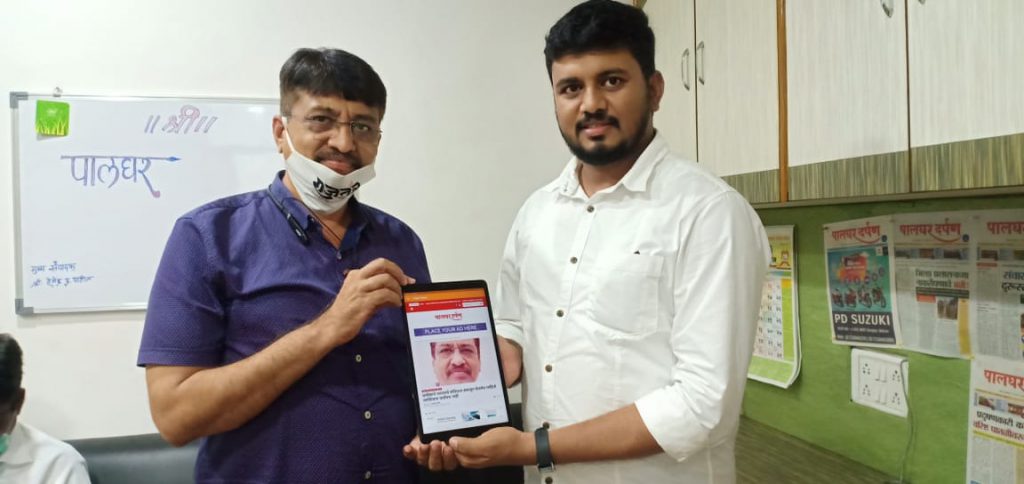 पालघर जिल्ह्यातील निर्भीड वृत्तपत्र म्हणून अल्पावधीत नावलौकिक मिळालेल्या नंतर वाचकांना अधिकाअधिक वेळेत ताज्या घडामोडींचा आडावा मिळावा यासाठी पालघर दर्पणने मोबाईल अँड्रॉइड अँप वाचकांना उपलब्ध करून दिले आहे. स्वातंत्र्य दिनानिमित्ताने पालघर दर्पण वृत्तपत्राचे मोबाईल अँड्रॉइड अँपचे अनावरण अखिल भारतीय मराठी पत्रकार परिषदेचे सरचिटणीस संजीव जोशी सर यांच्या शुभहस्ते करण्यात आले.